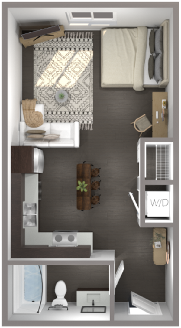 This brand-new studio offers a thoughtfully designed open layout that makes everyday living easy and efficient. Modern finishes throughout include luxury vinyl plank flooring, granite countertops, and sleek contemporary fixtures. The kitchen features full-size appliances and new cabinetry for a polished look. With in-unit laundry and high-efficiency HVAC, comfort and convenience are built in. Pet-friendly and low-maintenance, this studio is ideal for those who appreciate smart design and modern style.